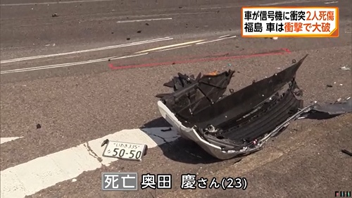 30日の朝早く、郡山市の県道で男性2人が乗った乗用車が信号にぶつかり、1人が死亡、もう1人が重傷とみられます。